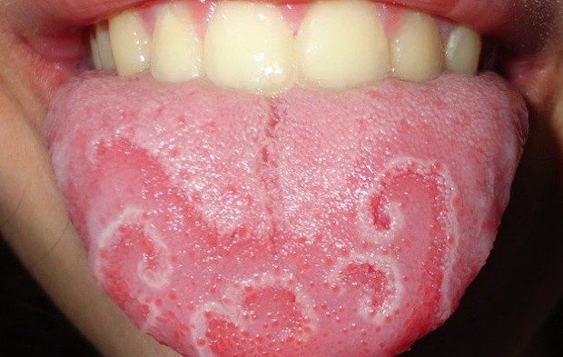 Иметь такой географический узор на языке — обычное дело. Называется он «географическим», потому что издалека напоминает карту мира. Ну или, карту отдельной страны… Беды от такого языка ждать не стоит. Единственное, от чего вы можете пострадать, — повышенная чувствительность к некоторым зубным пастам, специям и отдельным продуктам.