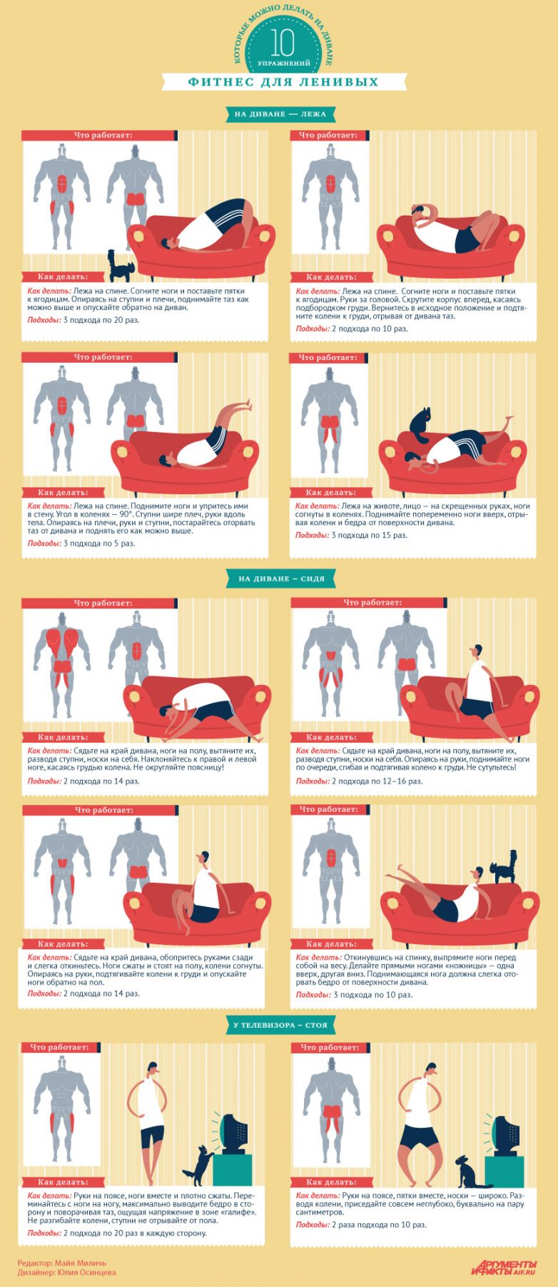 Фитнес для ленивых: 10 упражнений, не вставая с дивана