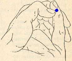 Интенсивная (до боли), но кратковременная акупрессура ногтем большого пальца или любым заостренным предметом биологически активной точки расположенной у основания ногтевого ложа мизинца противоположной руки.Потереть ладони одна о другую. Наложить ладони, подушечками под большими пальцами, на ушные раковины. Выполнять интенсивные растирающие движения вверх и вниз. Тереть до ощущения жара в ушных раковинах, но не менее 20 раз.