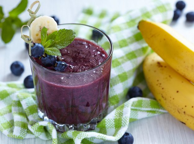 Считается, что черника куда лучше моркови заботится о здоровье наших глаз. В сочетании с бананом вы получите очень сытный смузи, который может стать полноценным перекусом или завтраком. Мята добавит свежести.
