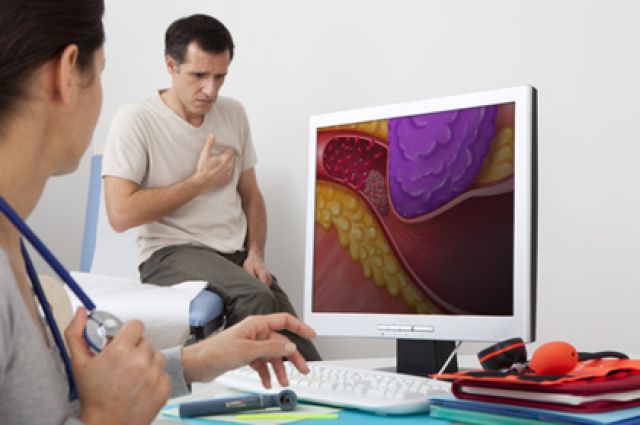 Симптомы ишемии: Верный ее признак – стенокардия, приступ загрудинных болей, возникающих при физических или психоэмоциональных нагрузках в ответ на повышение потребности сердечной мышцы в питании и кислороде. Кстати, гораздо чаще при стенокардии ощущается жжение, дискомфорт, сдавление в грудной клетке, за грудиной, а то и в области пищевода. Бывают и атипичные случаи, когда стенокардия проявляется болями под левой лопаткой, в левой руке. Нередко стенокардитические боли принимают за изжогу и пытаются снять их приемом соды или антацидных средств.