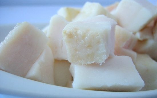 Получают этот жир путем так называемого мокрого вытапливания. По своей консистенции он твердый, но в расплавленном состоянии напоминает оливковое масло, что позволяет легко смешивать его с другими компонентами и использовать как для внутреннего, так и наружного применения, в том числе и в косметологии.