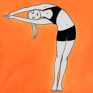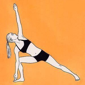 Поставьте ноги чуть шире плеч, пальцы правой ноги должны быть повернуты на 90 градусов, а левой – на 45, руки поставьте в стороны на уровне плеч, ладонями вниз. Перенесите вес тела на правую ногу и согните правое колено на 90 градусов. Дотянитесь правой рукой до пола, а левой тянитесь вверх к потолку. Посмотрите в потолок и останьтесь в такой позе на 20 секунд. Вернитесь в исходное положение, поменяйте опорную ногу и повторите.