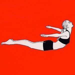 Лягте на пол на живот, руки в стороны ладонями вверх, ноги вытянуты. Поднимите грудь и руки от пола, ягодицы сожми. Приподнимите над полом бедра, слегка сгибая колени. Задержитесь на 10 секунд. Вернитесь в исходное положение. Отдохните 20 секунд и повторите упражнение.
