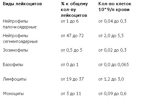 Так как лейкоциты бывают нескольких видов – моноциты, базофилы, нейтрофилы (палочко- и сегментоядерные), лимфоциты, эозинофилы и другие – соответственно, и выделяются разные виды лейкоцитоза.Пределы нормы для разных видов лейкоцитов: