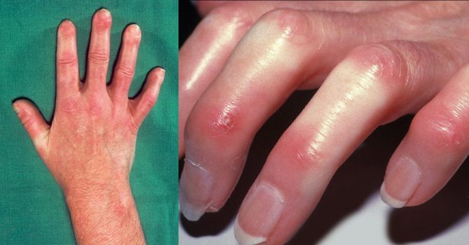 3. Одним из симптомов склеродермии являются красные пятна на руках, которые сопровождаются отечностью кожи и повреждением мелких капилляров.