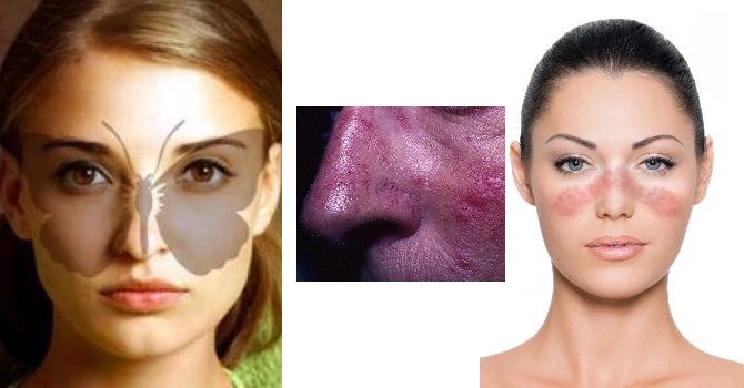 5. При красной системной волчанке могут появиться пятна на лице в виде бабочки. Также может покраснеть шея или кожа рук.