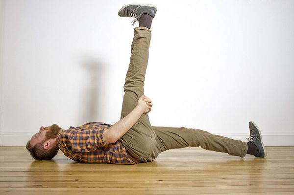 1. Лягте на пол, согните ногу в колене и прижмите к груди. Задержитесь в этом положении, почувствовав, как растягиваются мышцы поясницы на 20 секунд. Повторите 3 раза для каждой ноги.