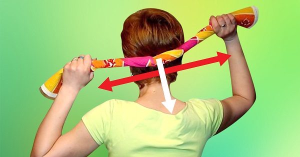 2. Хорошо прижмите полотенце к затылку. Держите его двумя руками с разных сторон в натянутом состоянии.