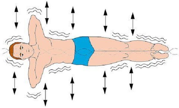 3. Начинайте вибрировать телом справа налево, представляя что вы — рыбка, плывущая и резвящаяся в воде. Вибрации выполняйте в течение 1–3 минут.