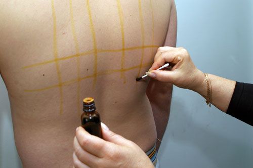 Итак, как вылечить сухой кашель методами домашней йодотерапии? Сетку наносят либо на горло (при ангине), либо на грудь (при воспалении легких). У некоторых людей кожа на этих частях тела отличается особой чувствительностью. Поэтому для начала можно нанести всего лишь один небольшой штрих. Если в течение 10-15 минут не возникает жжения, зуда, дискомфорта, то можно приступить и к рисованию полноценной сетки. При кашле сетку на горле изображают два раза в день – утром и вечером.