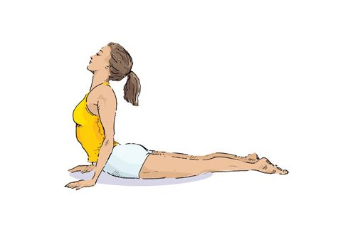 c) Надавливая на ладони, оторвите грудь и живот от пола и постарайтесь отклониться назад.