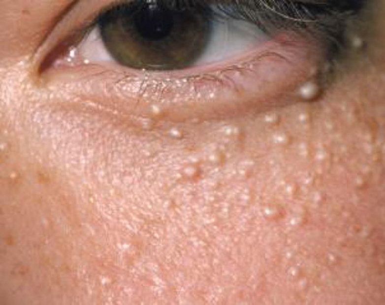 Белые «прыщики», «точки» и «уплотнения», прикрытые тонким слоем кожи, диаметром до 3 мм, которые появляются «под кожей» у многих взрослых людей, действительно, чаще всего являются милиумами.