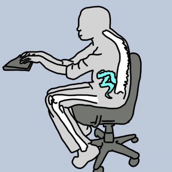 Сидячее положение — расслабленное. Из-за этого могут сокращаться связки. Особенно это справедливо, если вы сидите криво или же на неудобном стуле. В наихудшем варианте это ведет к атрофии мышц и постоянным болям.