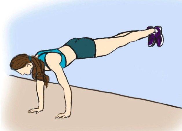Выполняя это упражнение, следи за тем, чтобы спина была идеально ровной. Удерживайся на кончиках пальцев и носочках 30-60 секунд.