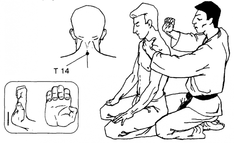 Еще один очень эффективный прием, который может спасти жизнь вашему товарищу (если, конечно, вы хотите его спасать)))) это прием Геймлиха. Наверняка вы его не раз видели по телевизору, когда большой парень подбегает сзади задыхающегося человека, обхватывает его вокруг тела и давит на живот. Во время этого кусочек пищи вылетает метров на 10 и все радуются спасению.