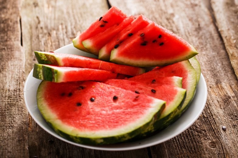 С полезными качествами арбуза в плане снижения лишнего веса, знаком практически каждый. Этот уникальный плод содержит в себе 93% жидкости, обеспечивающей сытость, но не разжигающей аппетит. Британские диетологи, помимо этого, говорят, что арбуз вмещает в себе большое количество витаминов С и А. Всего пол литра арбузного сока могут существенно ускорить процесс сжигания жира, если принимать их каждый раз перед едой.