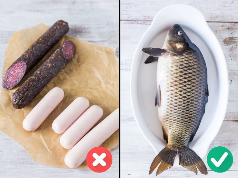 В колбасных изделиях только жир и соль, канцерогены, опасные для нашего здоровья.А мясной вкус этим продуктам придает глутамат натрия. А это повод задуматься и заменить эти продукты на натуральные мясо и рыбу.