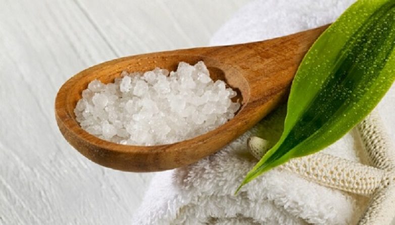Чтобы приготовить этот скраб, необходимо смешать полстакана морской соли, чайную ложку эфирного масла апельсина и небольшое количество увлажняющего крема. Во время приема душа необходимо нанести маску на участок кожи с вросшими волосами круговыми массирующими движениями. После нужно нанести смесь из настойки календулы и салициловой кислоты в пропорции 1: 1. Завершающий этап процедуры — увлажнение кожи детским кремом.