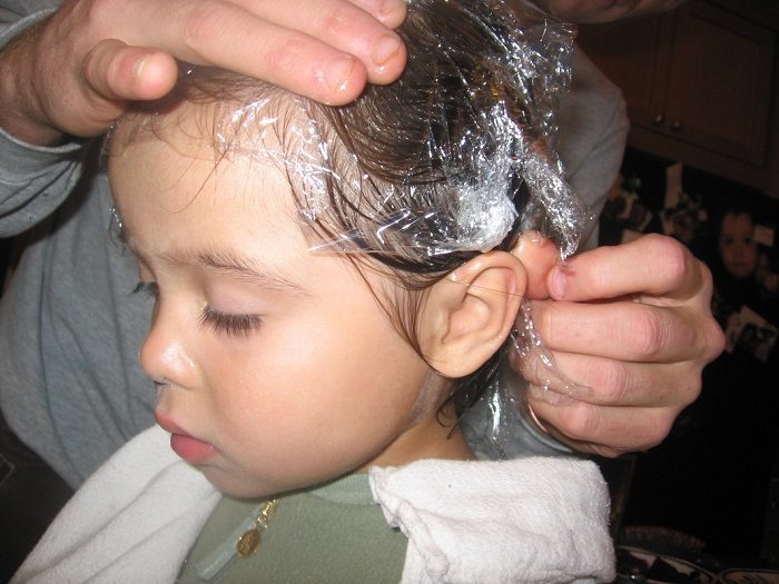 После процедуры волосы обильно промываем водой. Можно воспользоваться специальным шампунем против вшей и вымыть им голову после процедуры — такой себе контрольный выстрел.