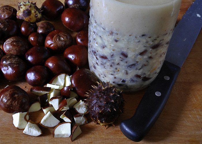 Такой целебный напиток готовится путем брожения. Возьми 30 измельченных плодов каштана, 3 литра кипяченой воды, 1 стак. сахара и 1 ст. молочной сыворотки. Помести все ингредиенты в большой герметичный сосуд и оставь на 2 недели. Лечебный каштановый квас будет вскоре готов!