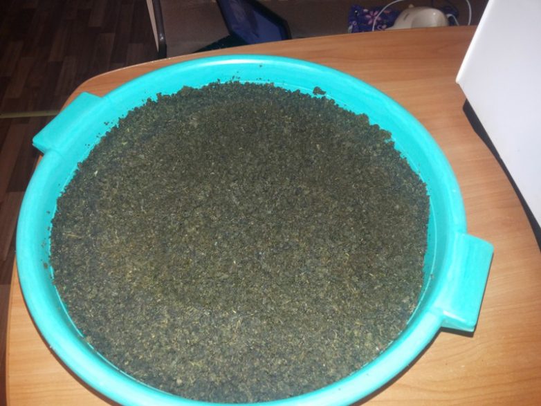 Этот этап называется ферментация чая и занимает от суток до двух. Зелёное месиво меняет цвет на коричневый и вместо силосного запаха появляется запах мёда и цветов. Здесь важно не передержать, иначе чай сквасится и вся партия на выброс. Как только запах поменяется на медово-цветочный материал готов к просушке.