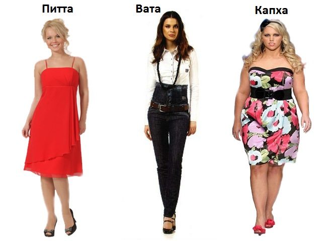 Обычно, существуют семь типов конституции тела: 1) вата, 2) питта, 3) капха, 4) вата-питта, 5) питта-капха, 6) вата-капха, и 7) питта-капха. Среди этих семи основных типов есть множество вариантов, которые зависят от количественного содержания элементов вата-питта-капха в конституции тела.