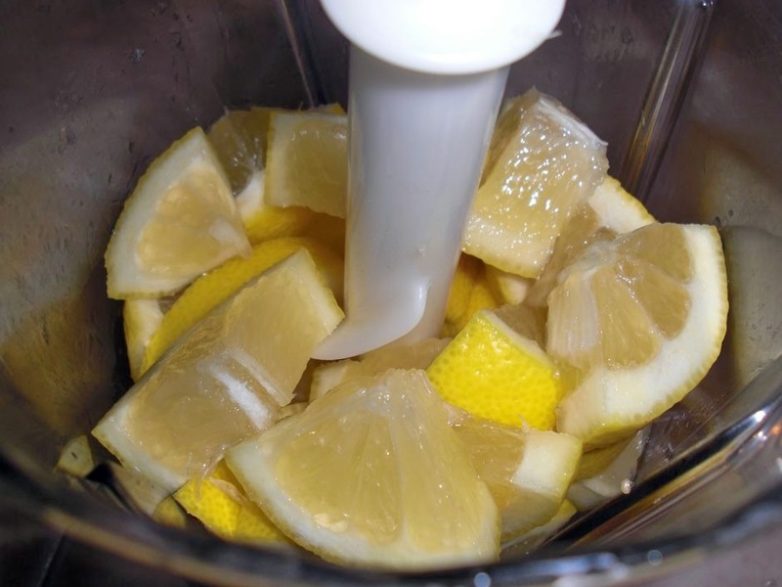 Нарежь лимон маленькими кусочками и добавь в блендер. Измельчи все составляющие до образования однородной массы.