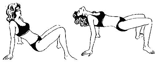 Ляг на живот на твердую поверхность, опираясь только на пальцы ног и ладони. Подними таз вверх, при этом спина должна быть выгнута дугой. Выпрями колени и локти, опусти голову. Ноги поставь на расстоянии 20 сантиметров.Затем подними голову и откинь ее назад. Выполнять это упражнение нужно плавно. Опусти таз к полу, а затем подними его повыше, опять выгнув спину. Руки и колени должны быть ровными.