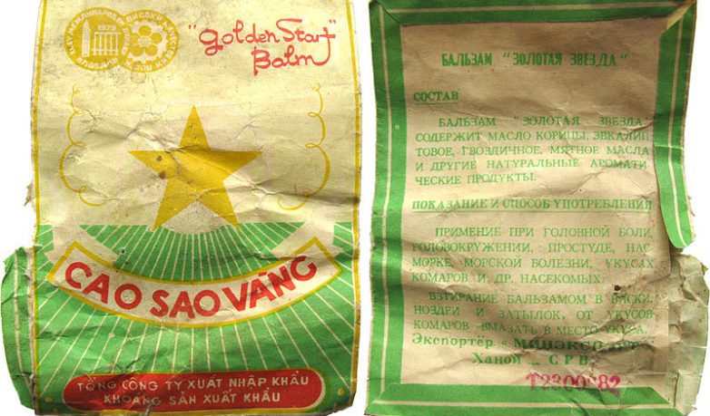 В оригинале мазь называлась «Вьетнамская Звезда» и производилась она, соответственно, на вьетнамских заводах. Конкретным автором оригинального состава были ученые вьетнамской фармакологической компании Данафа, Danapha Pharmaceutical JSC. Название Cao Sao vàng американские фармацевты перевели как «Бальзам Золотая Звезда», с такой маркировкой появился он и на нашем рынке. Советские люди бальзам «распробовали» не сразу: поставлялся он, почему-то, с инструкцией на родном языке. Еще, в первом варианте мазь не содержала целительное эвкалиптовое масло — его добавление превратило препарат в настоящее чудо.