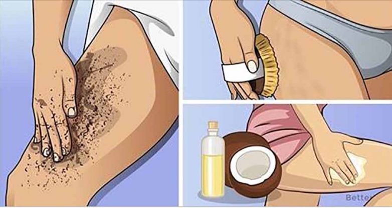 Сухая чистка — прекрасный способ помочь нам избавиться от целлюлита. Это один из наиболее эффективных натуральных средств. Некоторые женщины заметили положительные результаты всего за 1 месяц. Этот метод открывает ваши поры и удаляет мертвую кожу. Таким образом, он устраняет токсины и позволяет им свободно выбраться. Вы также будете стимулировать производство коллагена и улучшить кровообращение, которое поможет вам получить более гладкую и более упругую кожу.Кокосовое масло
