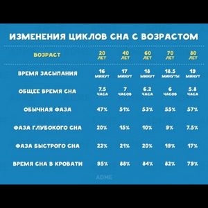 Основываясь на приведенных выше данных, можно сказать, что средний 80-летний мужчина получает на 62% меньше глубокого сна, чем средний 20-летний парень.