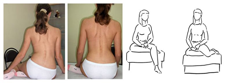 При искривлении позвоночника человек неосознанно принимает позу, удобную именно для сколиоза. А лечебная должна быть зеркальной. Всегда обращай внимание как ты сидишь, стоишь и принимай нужную позу.