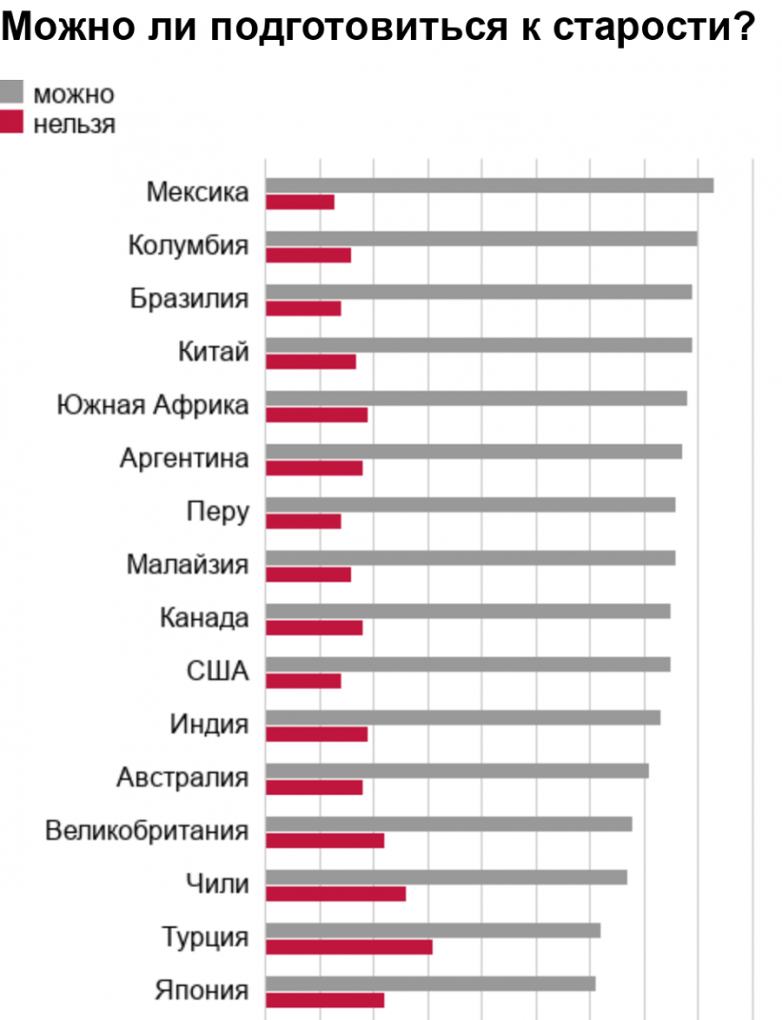 Если старость не радость, возможно, стоит к ней заранее подготовиться.«Всегда готовы!» — дружно говорят латиноамериканцы с китайцами. «Это невозможно», — опускает руки каждый второй опрошенный в России, Чехии и Южной Корее.