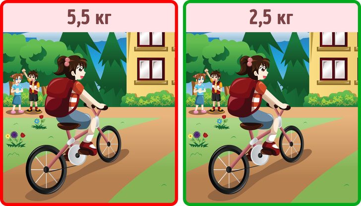В некоторых случаях это даже необходимо, но главное — соблюдать нормативы веса. Рюкзак вместе со всем содержимым должен весить не больше 10 % от массы вашего ребенка. Предположим, вес вашего ребенка — 22–25 кг. Следовательно, рюкзак не должен весить больше 2,2–2,5 кг.
