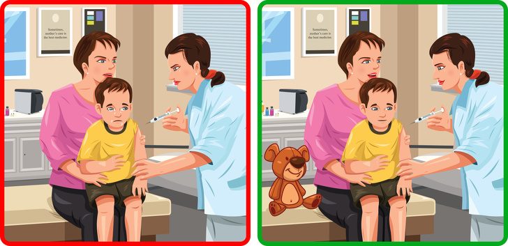 Важно не пугать ребенка заранее: улыбайтесь ему, не кричите, в момент укола старайтесь максимально отвлечь ребенка. Заранее обсудите процедуру с врачом: оставьте в кабинете игрушку, которую он подарит ребенку, когда сделает укол. Существуют специальные мази с местным анестетиком, которые уменьшают боль после укола, — можно воспользоваться ими.