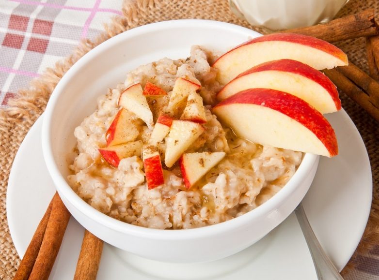 Овсянка с яблоком и корицейОтличная жиросжигающая комбинация. К ней можно добавить еще грецкие орехи и сухофрукты. Если положить орехи, то масло в кашу добавлять не нужно. А если нет, то добавь немного сливочного.