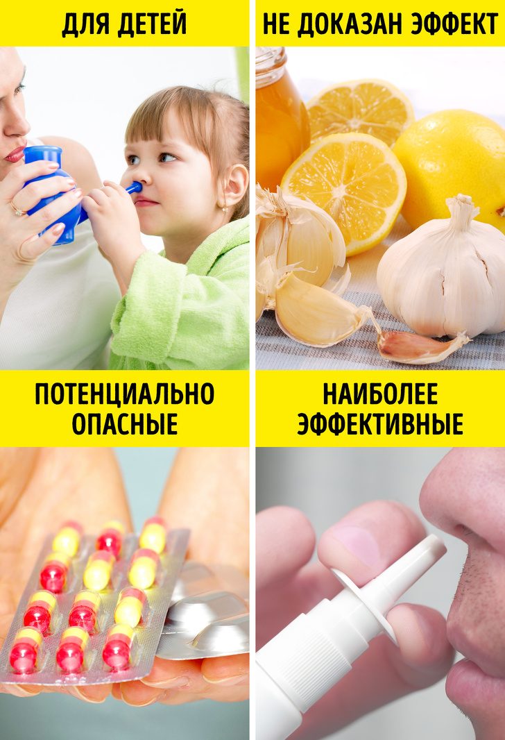 По мнению ученых и врачей, наиболее эффективными и безопасными для взрослых при заложенности носа оказались препараты, снимающие отек слизистой, а также эти же средства в сочетании с антигистаминными и анальгетиками.А вот эффективность антибиотиков при насморке оказалась под сомнением. Зато они попали в группу потенциально опасных препаратов.