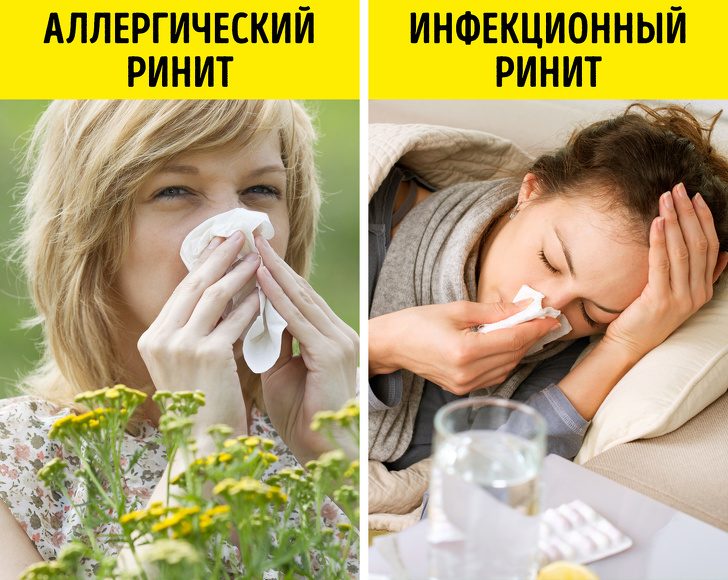 Насморк, или ринит по-научному, можно разделить на несколько типов в зависимости от причин появления: