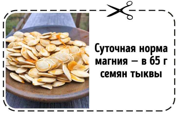 По количеству магния тыквенные семена заметно опережают семена подсолнечника: чтобы получить его суточную дозу, достаточно съесть всего 65 г. Кроме того, волокна, содержащиеся в семенах, способствуют снижению уровня холестерина и риска развития сердечно-сосудистых заболеваний.