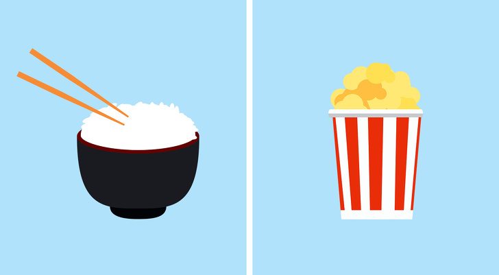 Очищенный рис содержит быстрорастворимые углеводы, за счет которых молекулы глюкозы мгновенно поступают в кровь. Происходят скачки уровня сахара, которые очень негативно отражаются на здоровье мозга и нервной системы.В попкорне содержатся протеин, золото, фосфор, железо и кремний, а также магний, который позволяет нервной системе работать бесперебойно. А витамины группы В, которыми также богат попкорн, помогают при депрессиях и стрессах.