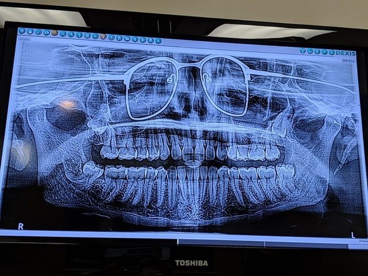 2. Панорамный снимок челюсти. Мужчина забыл снять очки