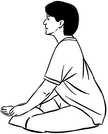 Сядьте, скрестив ноги, поясница прямая. Положите левую стопу перед правой, которая подвёрнута под бедро. Оставьте между стопами промежуток примерно в 20 см.Откройте грудную клетку, опустите плечи и смотрите на линию горизонта. Мягко положите кисти на поверхность стоп.