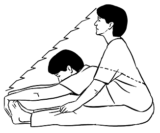 Соедините подошвы обеих стоп перед областью паха. В идеале пятки должны находиться примерно на расстоянии вашего кулака от тела и на одной линии с коленями.Возьмите пальцы ног и стопы в руки и держите спину прямо под прямым углом к полу, плечи опущены (см.рис.).