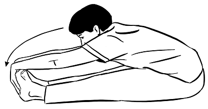 После этого поднимите левое плечо и выполните скручивание вправо. Продолжайте перекаты вперёд и назад через плечи и из стороны в сторону.