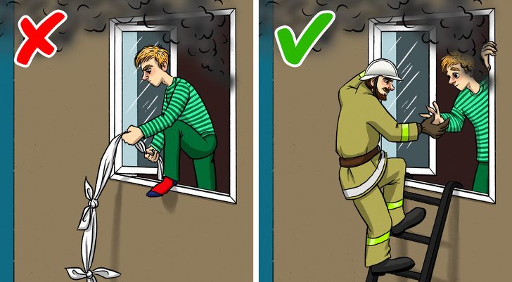 Мы изучили основные инструкции и выделил главные ошибки, которые нельзя допускать в случае пожара.