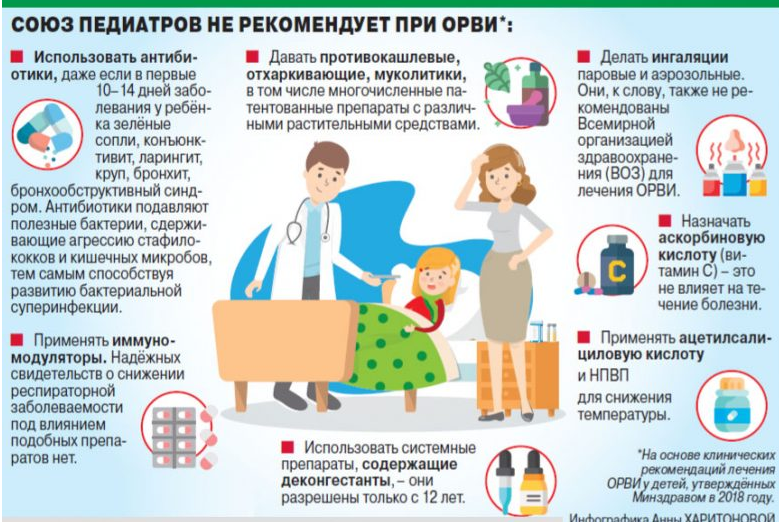 «ОРВИ – наиболее частая причина применения различных лекарственных средств и процедур, чаще всего ненужных, с недоказанным действием, нередко вызывающих побочные эффекты. Поэтому очень важно разъяснить родителям доброкачественный характер болезни и сообщить, какова предполагаемая длительность имеющихся симптомов, а также убедить их в достаточности минимальных вмешательств», – сообщается в документе.
