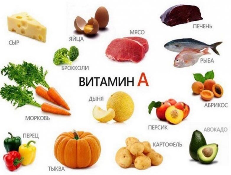 Продукты животного генезиса: печень, сливочное масло, сыр, икра осетровых пород, рыбий жир, желток яйца.Каротиноиды растительного генезиса: морковь, тыква, шпинат, брокколи, абрикосы, персики, виноград.