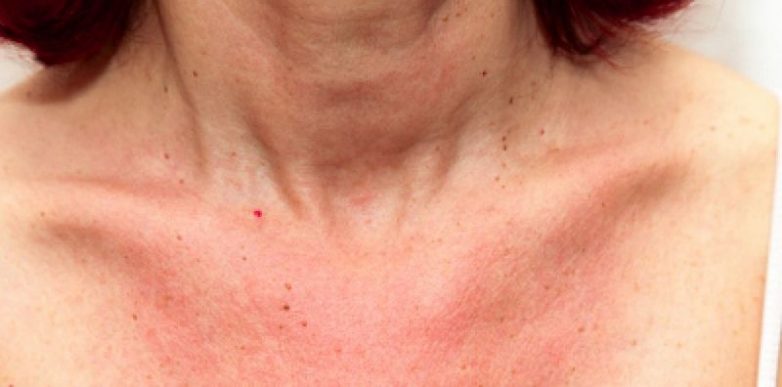 Характерный симптом волчанки, возникающий у 60–65% пациентов – появление волчаночной «бабочки» на лице. Так врачи называют специфическую сыпь красного цвета, покрывающую переносицу, щеки и нос больного. Среди других признаков обострения: