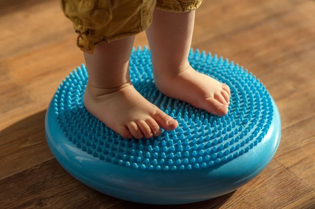 Гимнастика для ног. Для тренировки подойдут ортопедические коврики – как покупные, так и сделанные самостоятельно из морской гальки или, например, плодов каштана. Полезно также подниматься-спускаться по перекладинам шведской стенки босиком. Перед сном ребёнку полезно перекладывать мелкие предметы пальцами ног (например, можно собирать рассыпанные детали конструктора в коробку)